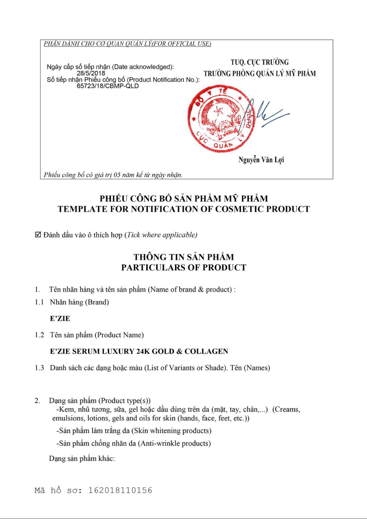• Số công bố sản phẩm: 2341/2021/ĐKSP